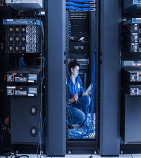 Mengamankan infrastruktur jaringan dari peretasan, serangan siber, dan kebocoran data melalui teknologi firewall serta sistem pertahanan berlapis.